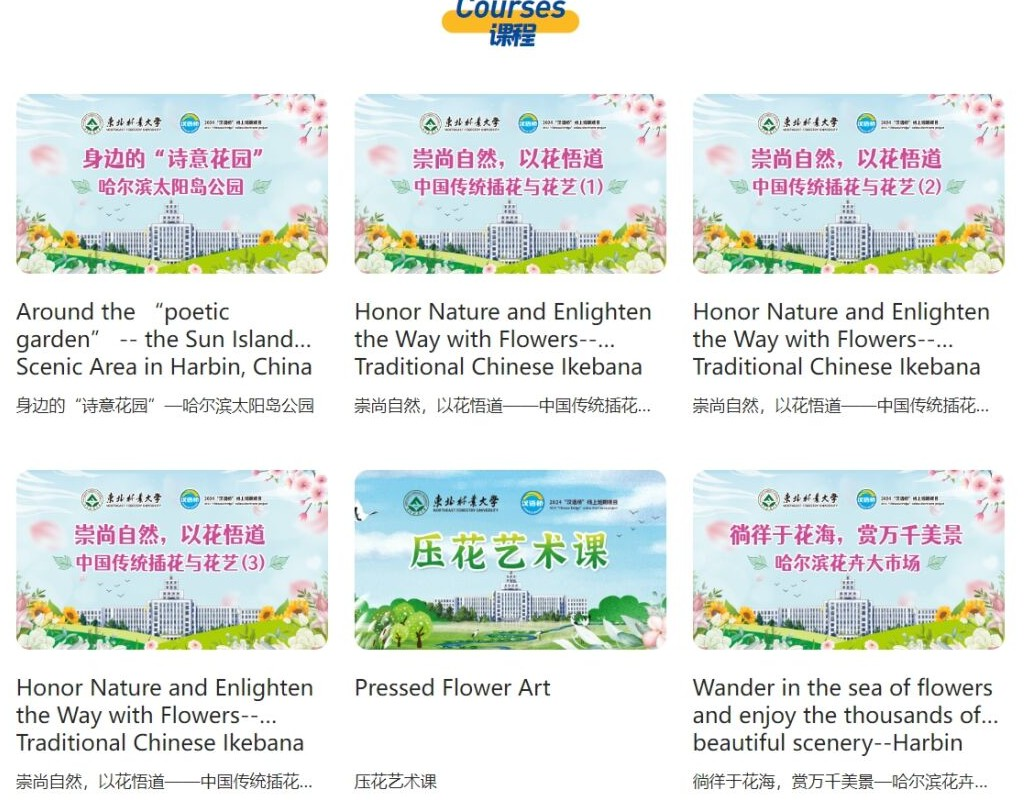 本次线上团组项目由我校国际交流学院与园林学院深度合作,项目突出龙江优势,强化内容建设,搭建起优质的留学生线上学习平台。采取“直播+录播”“汉语+专业知识+中国文化”的教学模式,带领留学生学习汉语、花道美学、插花压花艺术等特色鲜明的中国传统文化,让留学生提高汉语水平,感受中华传统花卉美学,收获线上游学龙江的丰富体验感。